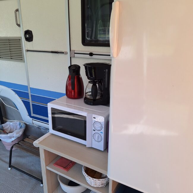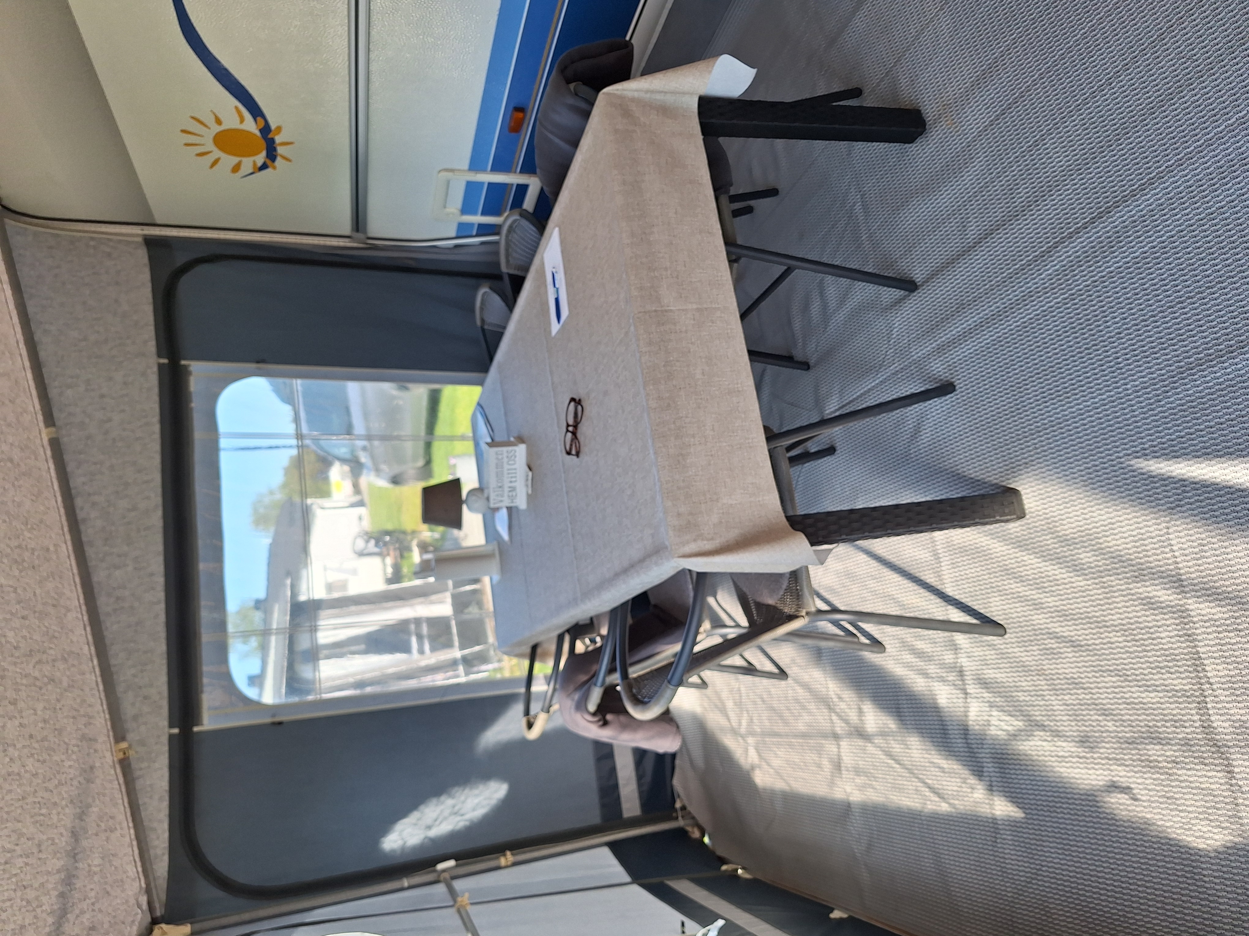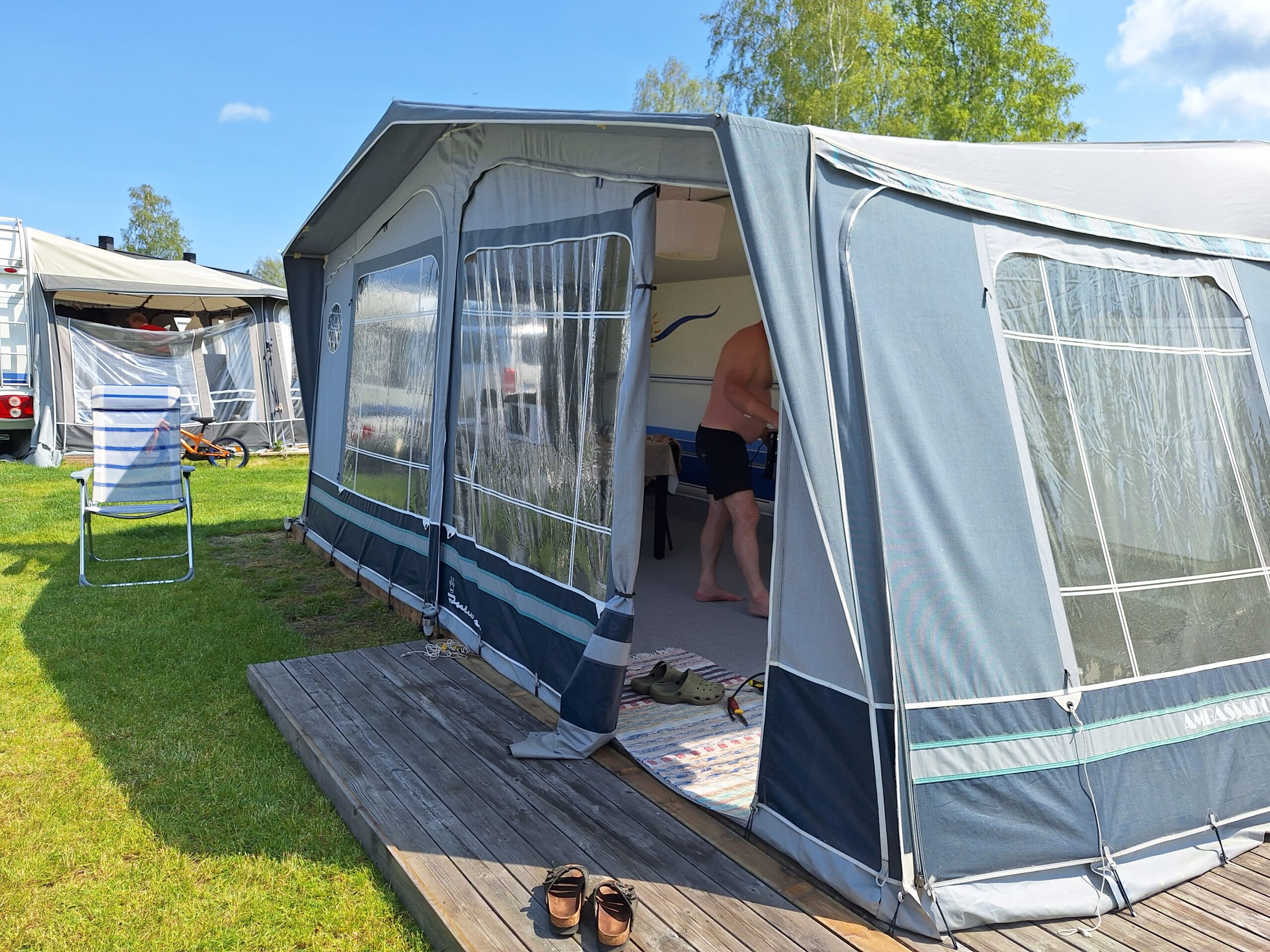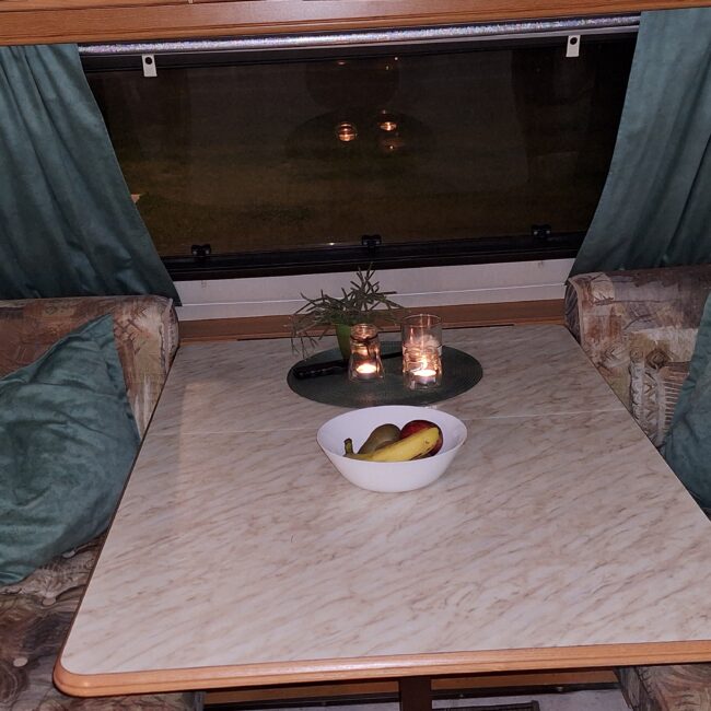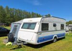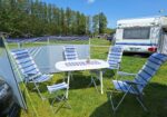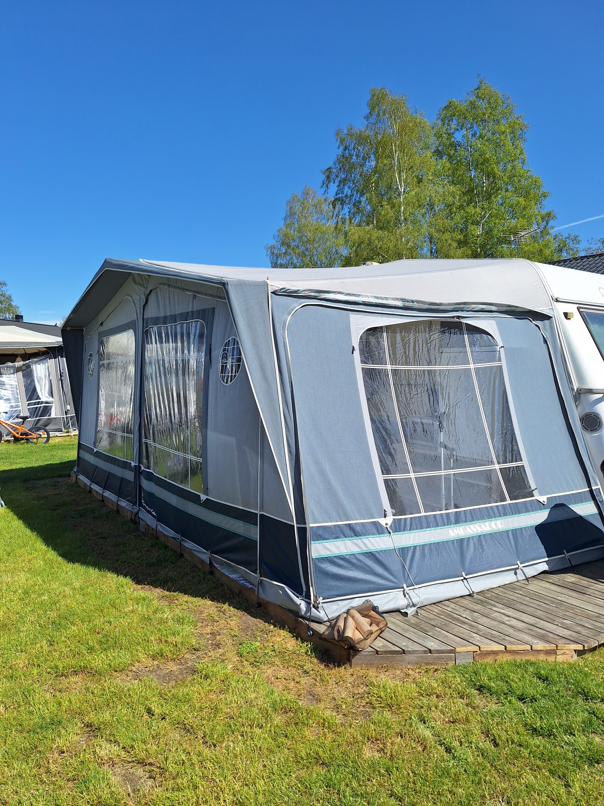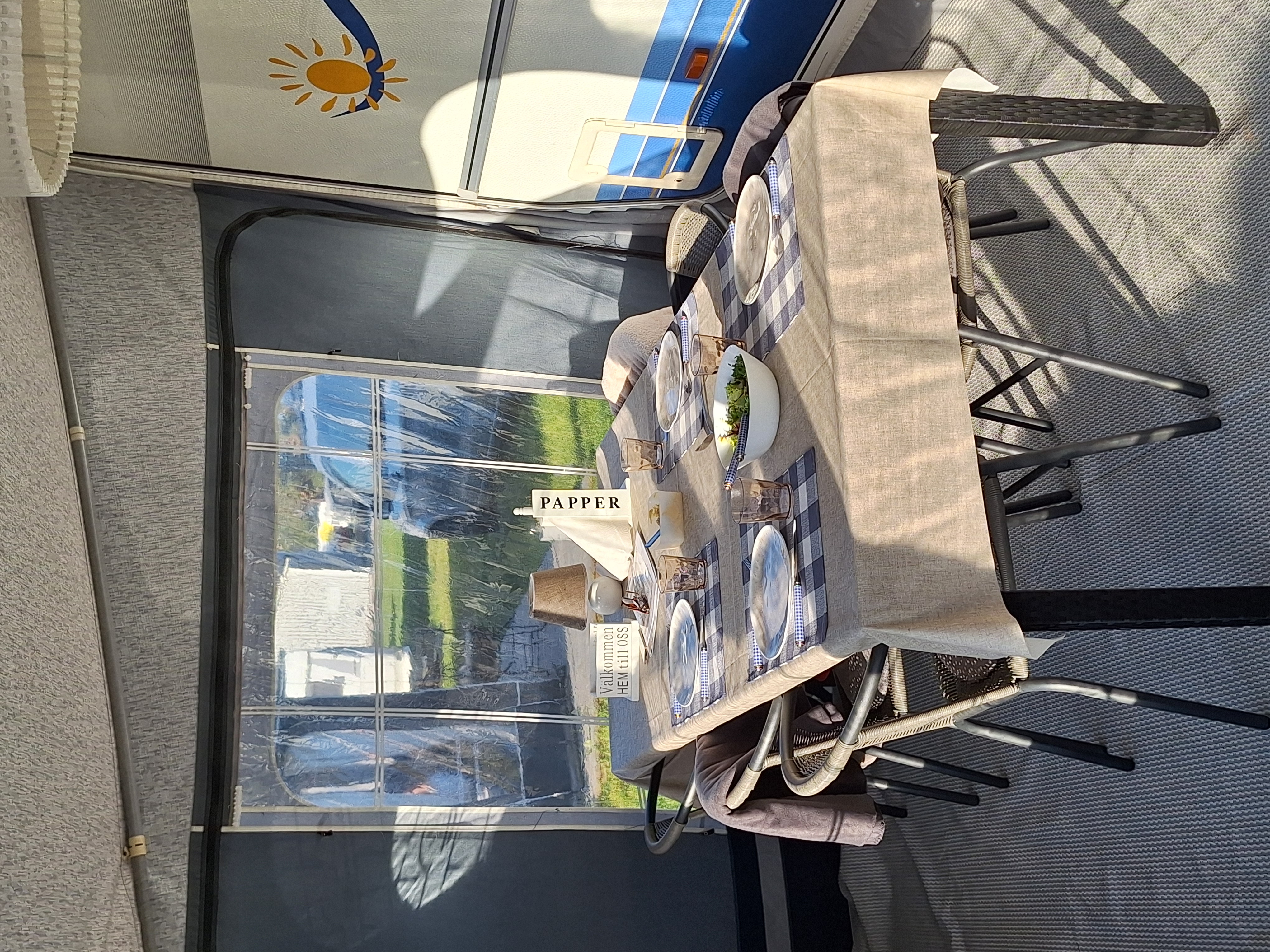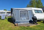 Vår husvagn finns på Fröjden med kvällssol och I närhet till servicehus och lekplats.