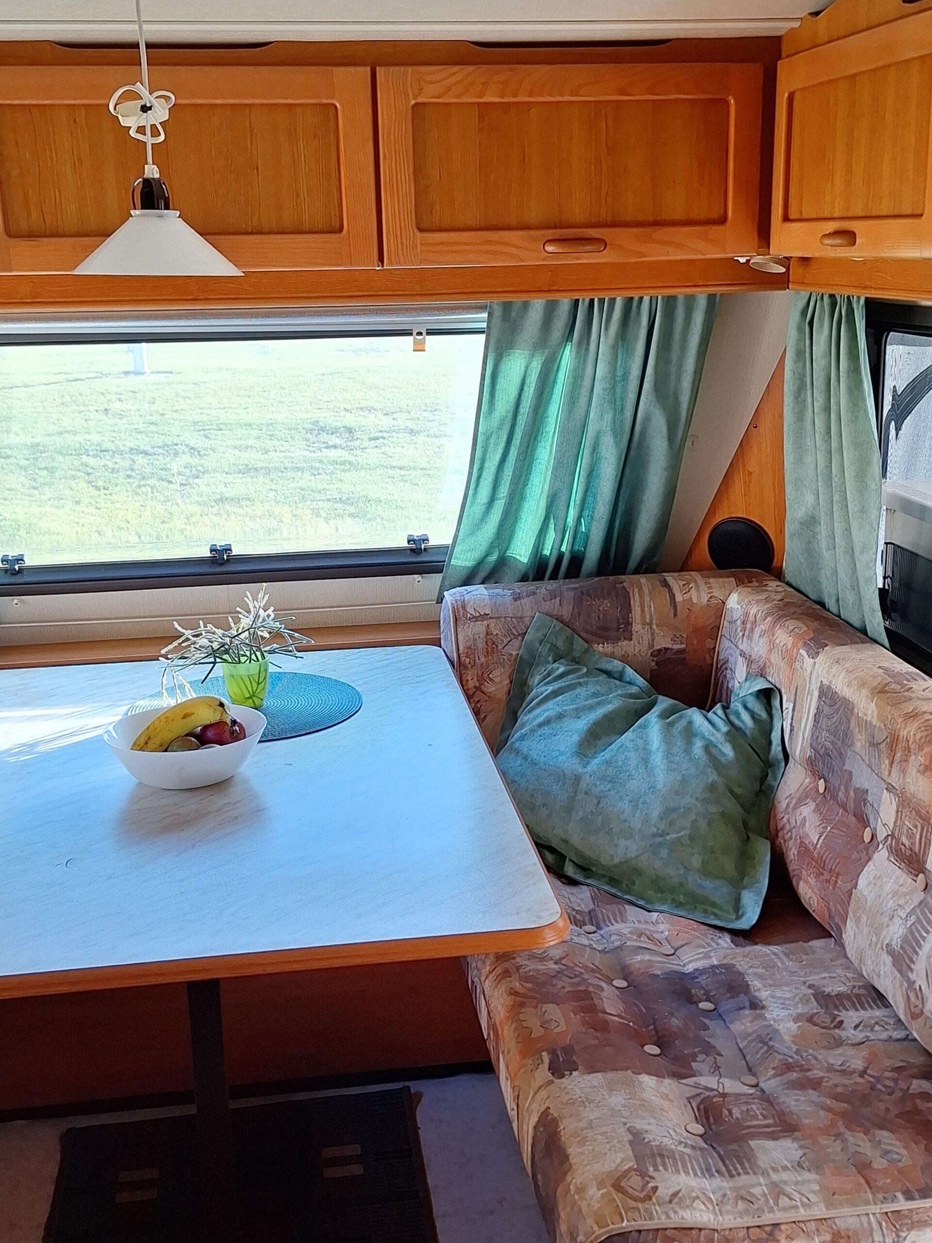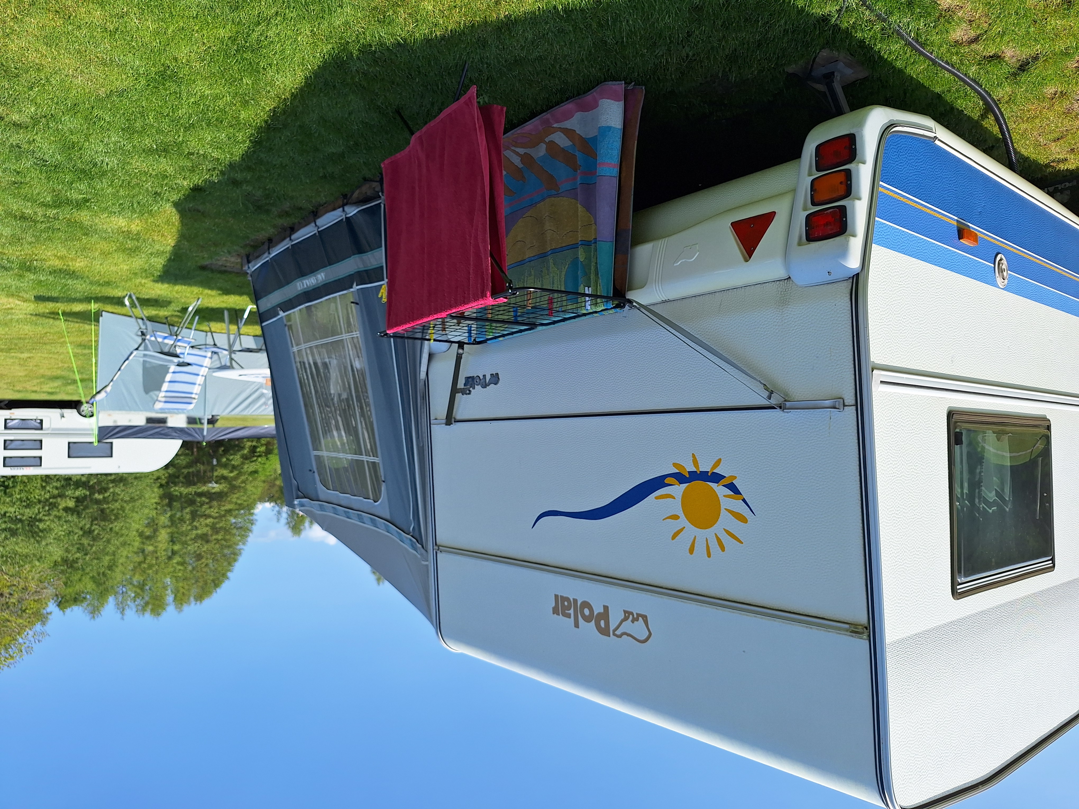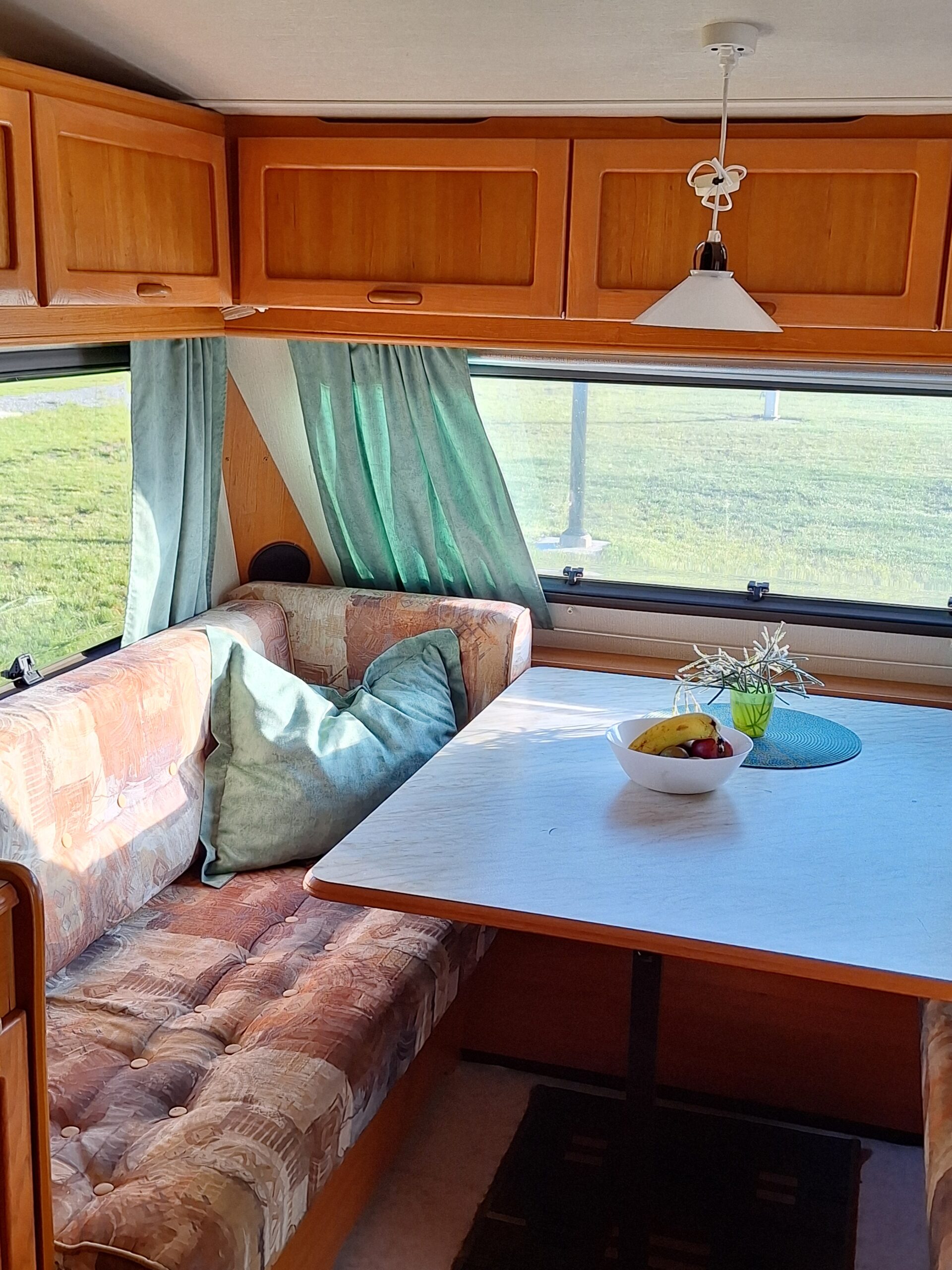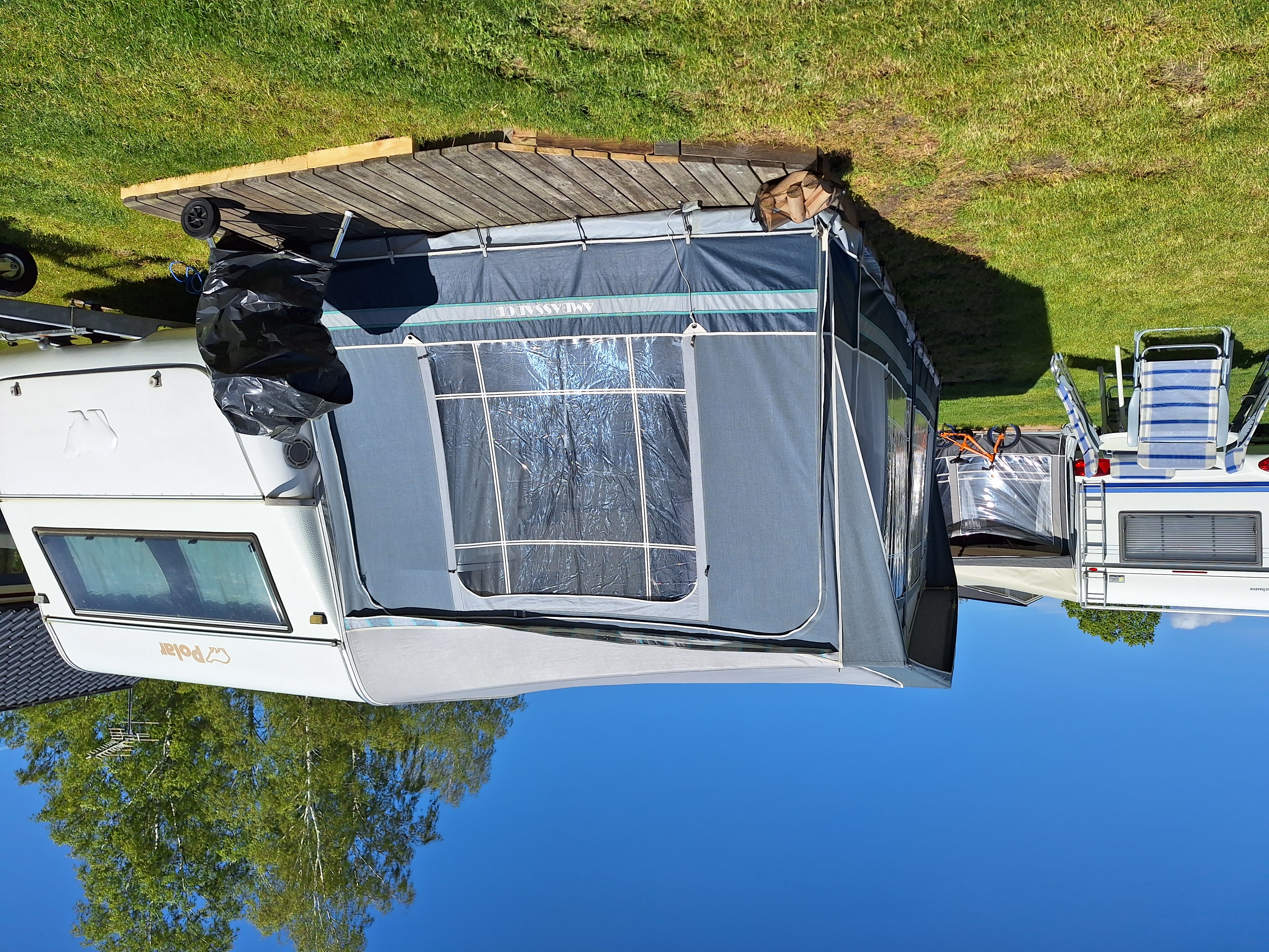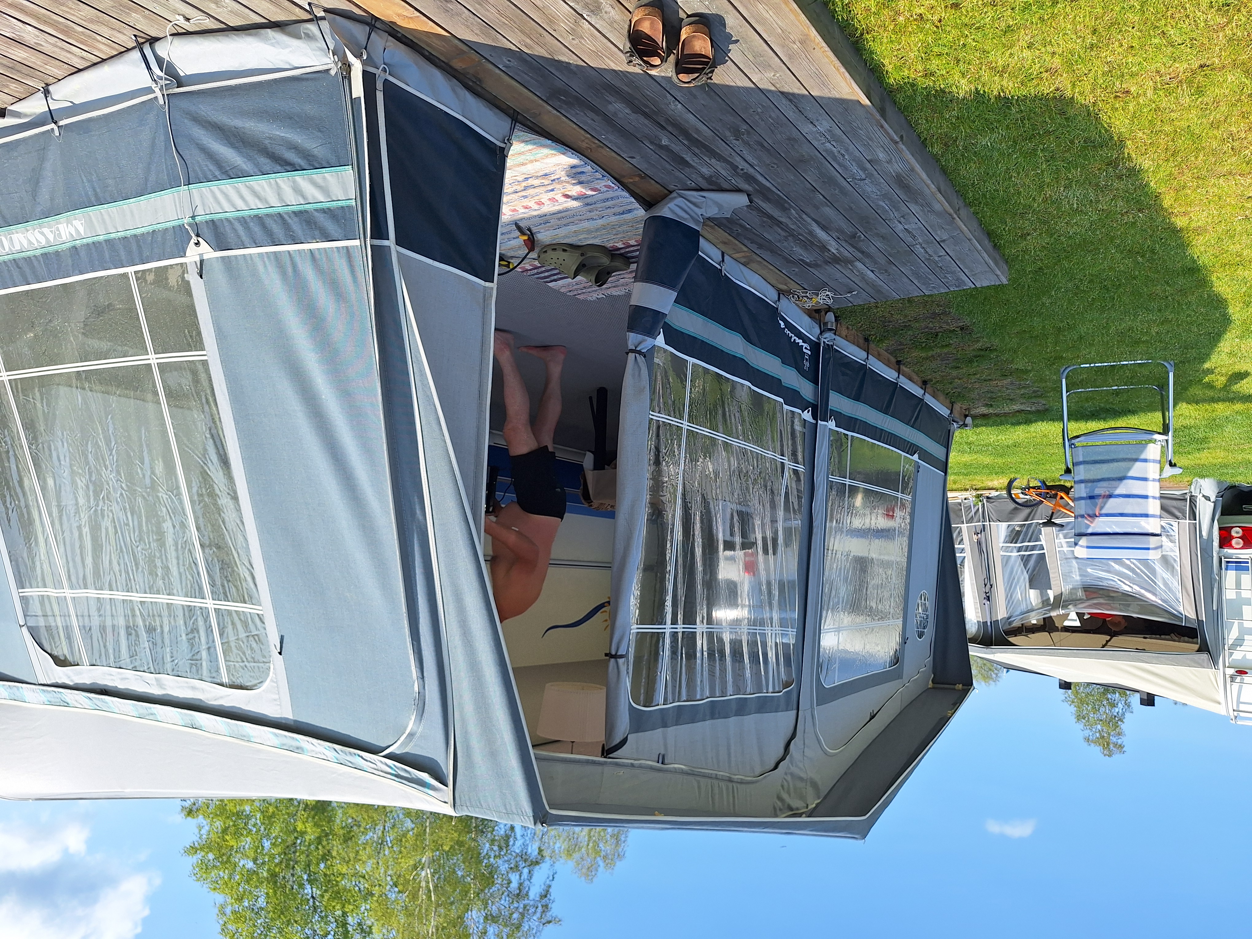 Vår husvagn finns på Fröjden med kvällssol och I närhet till servicehus och lekplats.
