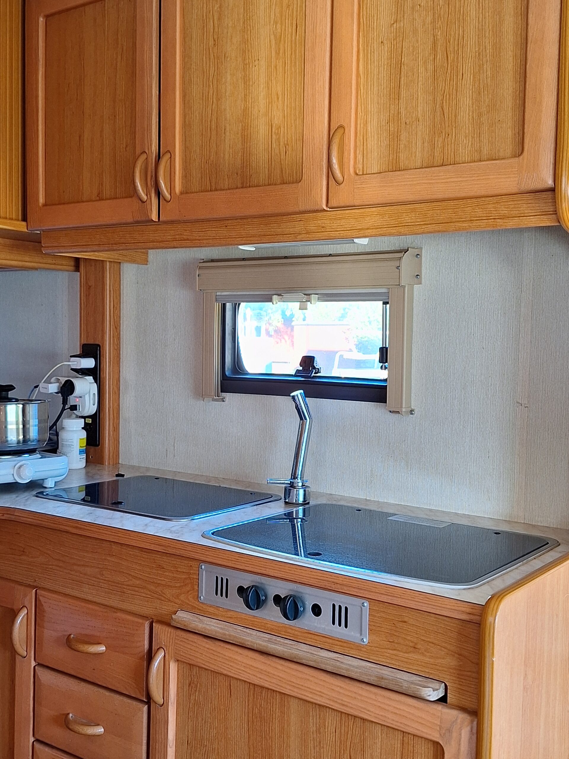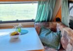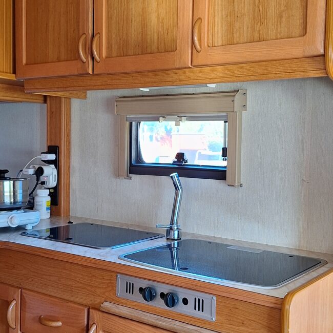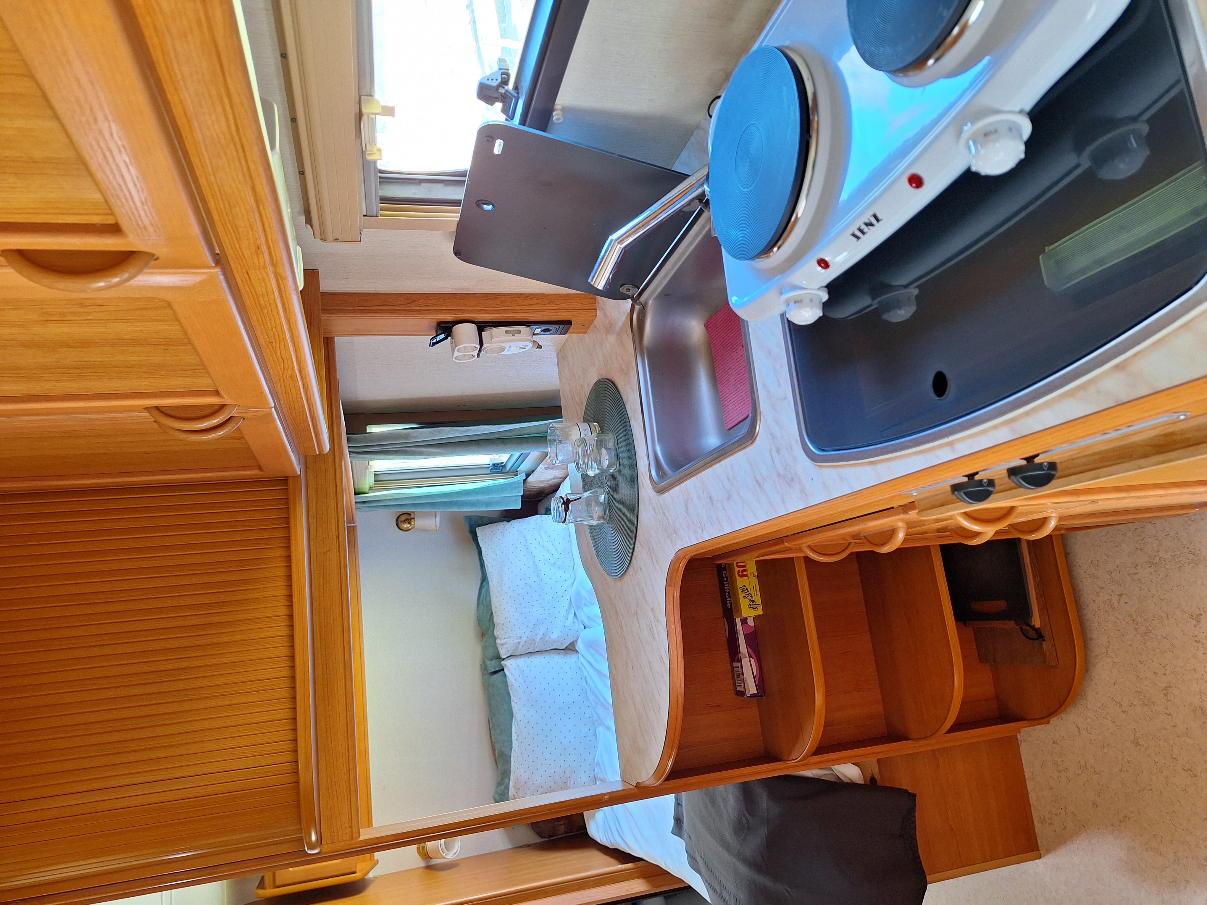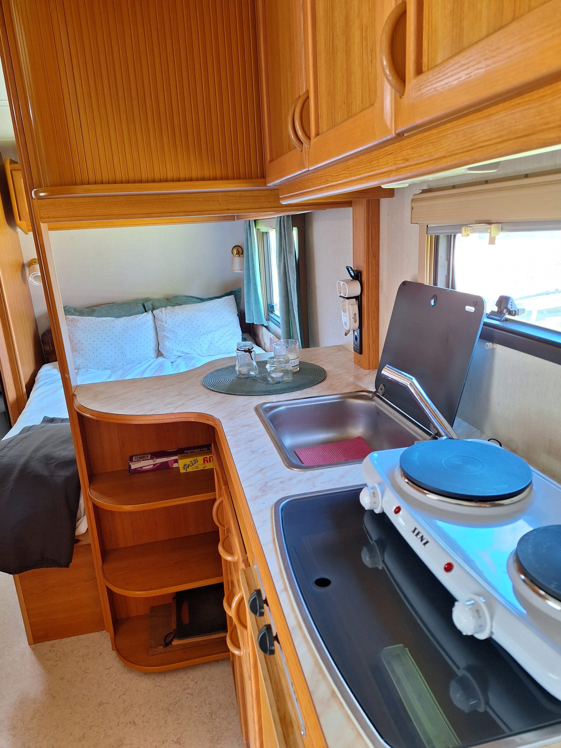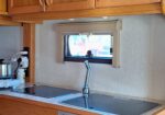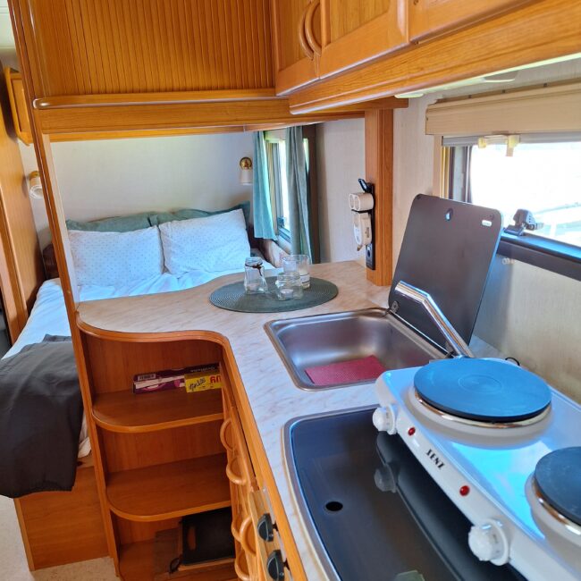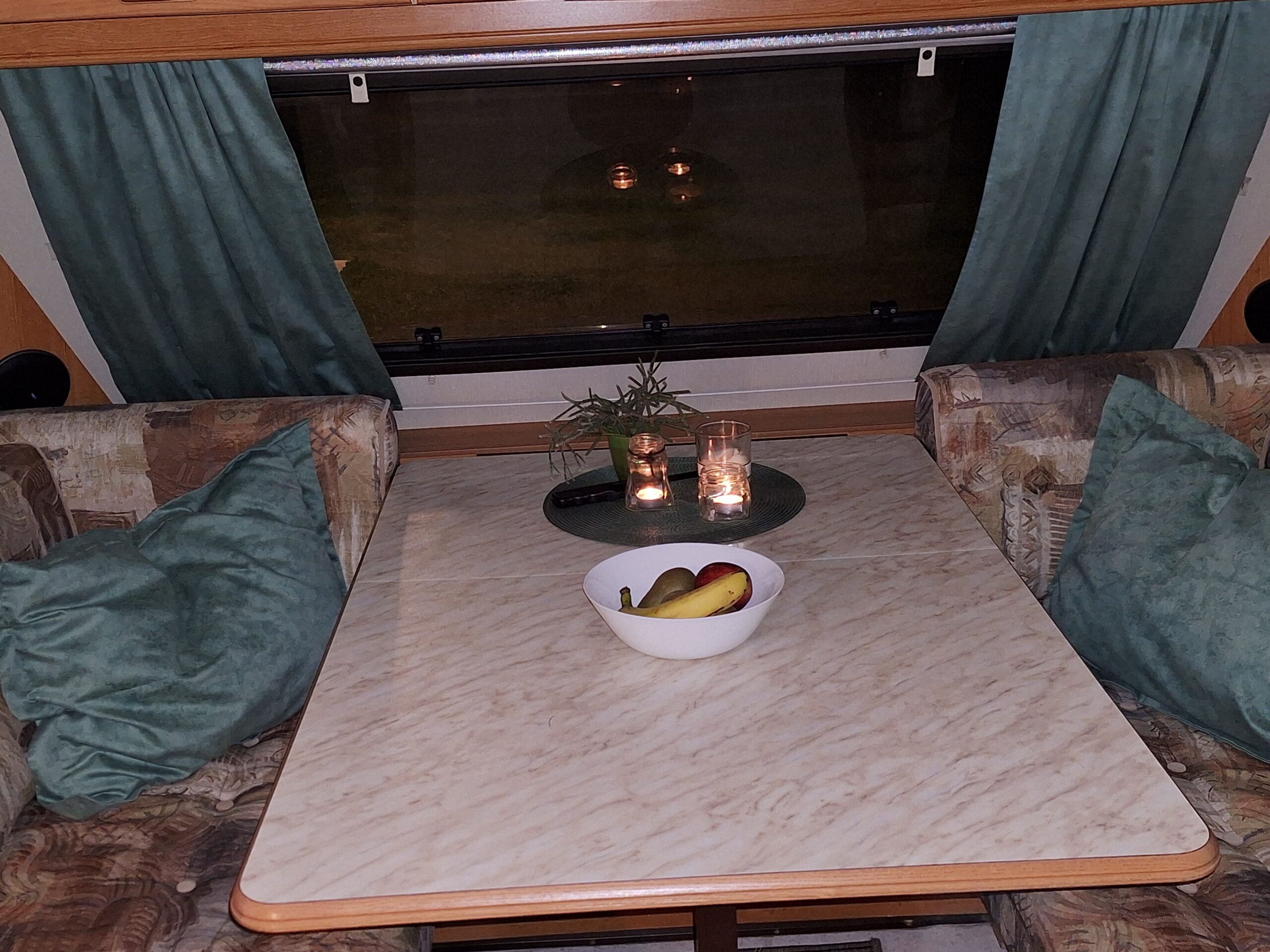 Vår husvagn finns på Fröjden med kvällssol och I närhet till servicehus och lekplats.